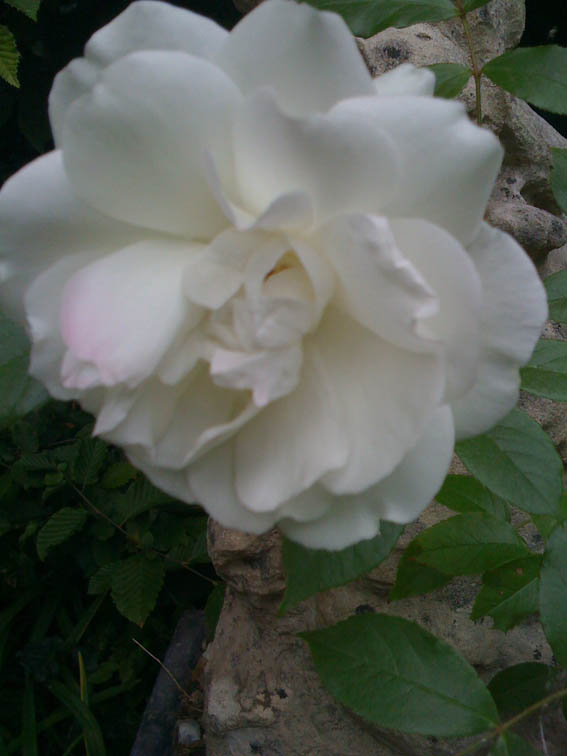 j'ai trouvé ces 2 rosiers dans mon jardin quand j'ai acheté la maison voici 3 ans, je ne sais pas s'ils sont de la même variété, ils sont blanc pur avec quelques tâches roses, le bouton est rose pâle. Ils font à peu près 1m de haut mais cela ne veut rien dire car ils étaient dans de telles conditions (la dame ne devait pas les aimer, ils étaient oubliés dans un amas de ronces et de brousailles monstrueux !!!)