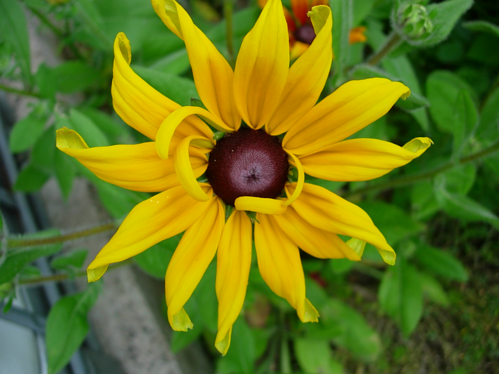 Pour la 2ème, moins de doute, ça a bien l'air d'être une Rudbeckies, elle appartient à la même famille que le Tournesol, les Composées (nom latin: Rudbeckia hirta)