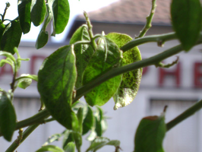 Ils ne s'arrangent pas du tout. Je ne comprends pas ce qu'ils ont. Les pucerons ont l'air d'avoir disparu mais j'ai toujours voire encore plus de taches de fumagine. Comme les feuilles jaunissent et tombent les unes après les autres je les arrose moins mais ça n'y fait pas grand chose.