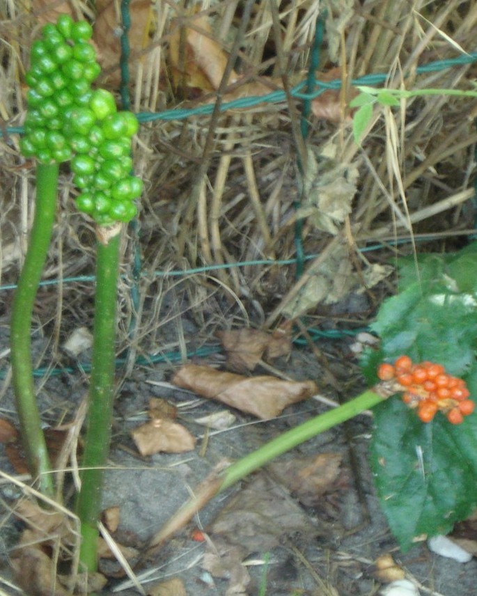 J'ai le même et en devenant rouge c'est très décoratif. Je pensais à un arum d'italie ou gouet. Lionel pourrait nous dire la différence d'avec arum maculatum. On le dit toxique