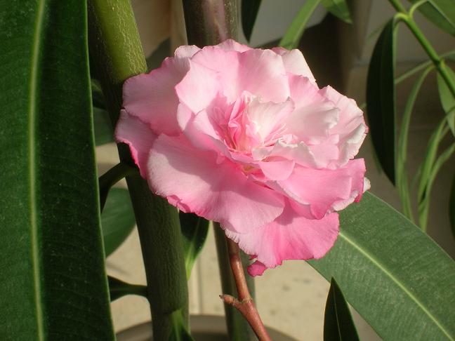 J'ai reçu cette plante qui mesurait 20 cm, pleine de cloportes...Après rempotage, elle s'est mise à grandir...Un rameau latéral a fleuri, puis une tige longue de 180 cm a poussé. Serait-ce un laurier rose...? J'hésite...Merci de m'aider...