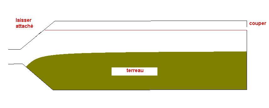 Chardon91 a écrit :Je coupe une bouteille plastique en deux dans le sens de la longueur, en coupant plus près d'un bord et en laissant un bout attaché, cela fait un couvercle à moitié fermé et un volume pour le terreau