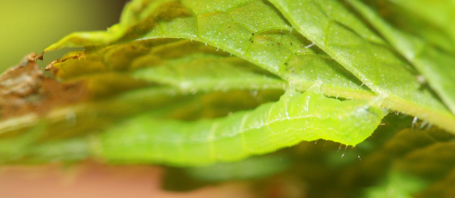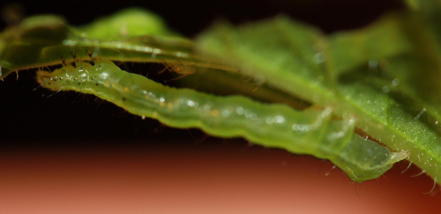 J'ai donc décidé d'observer de plus prés ... j'y ai vu une cicadelle adulte et j'ai découvert plusieurs larves (photo jointe) qui ressemblent au niveau de leurs forme à des cicadelles. Tout récemment plusieurs chenilles vertes (photo jointe) en plein repas ... que je retrouve également sur mes pieds de tomate tout proches ...