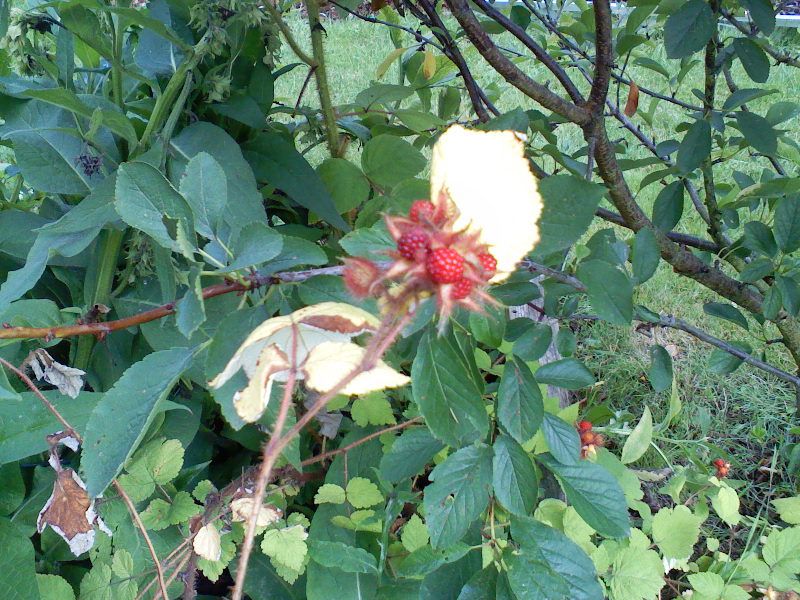 Mes parents ont une plante qui a poussé toute seule dans leur jardin (Bruxelles) et qu'ils ne parviennent pas à identifier ... la plante ressemble à une ronce et les les fruits à des petites framboises (ou des mures pas mures