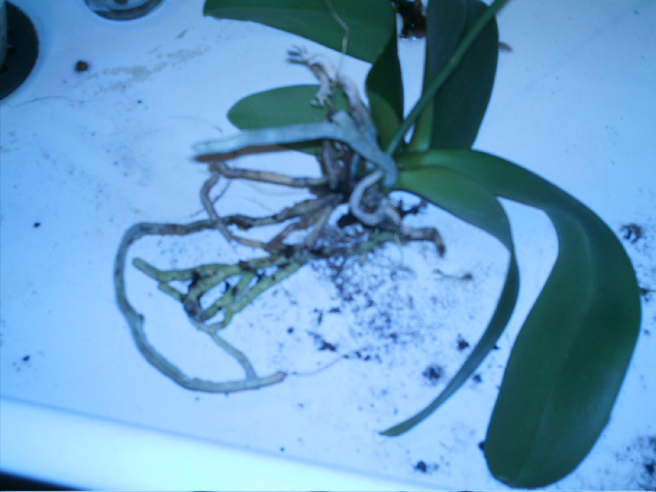 cette aprem apré avoir bassiné pour la premier foi mon phala anthura depuis lâcha j'ai vu a l'intérieure du pot une racine pourri et je me suis dit c pas bon signe alors j'ai dépoté et la quasi totalité étai pourri :!: ( :angryfire: ça me gonfle la pourriture :angryfire: ) j'ai donc procéder ainsi........