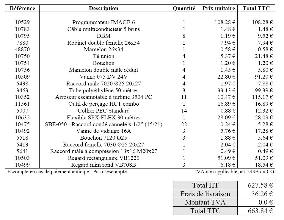 6°/ dans la liste du matériel, je n'ai pas vu de grand REGARD permettant de mettre les électrovannes ?