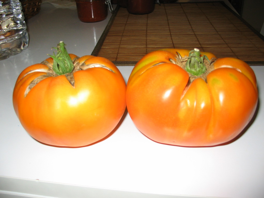 j'ai regardé sur le site de tomodori et sur ventmarin et à part persimmon et verna orange, je ne vois pas trop: c'est vraiment une grosse tomate orange, et en tapant ces deux critères (couleur orange et taille grosse), je n'ai vu que ces deux variétés qui pouvaient correspondre car je n'ai pas de graines des autres variétés.