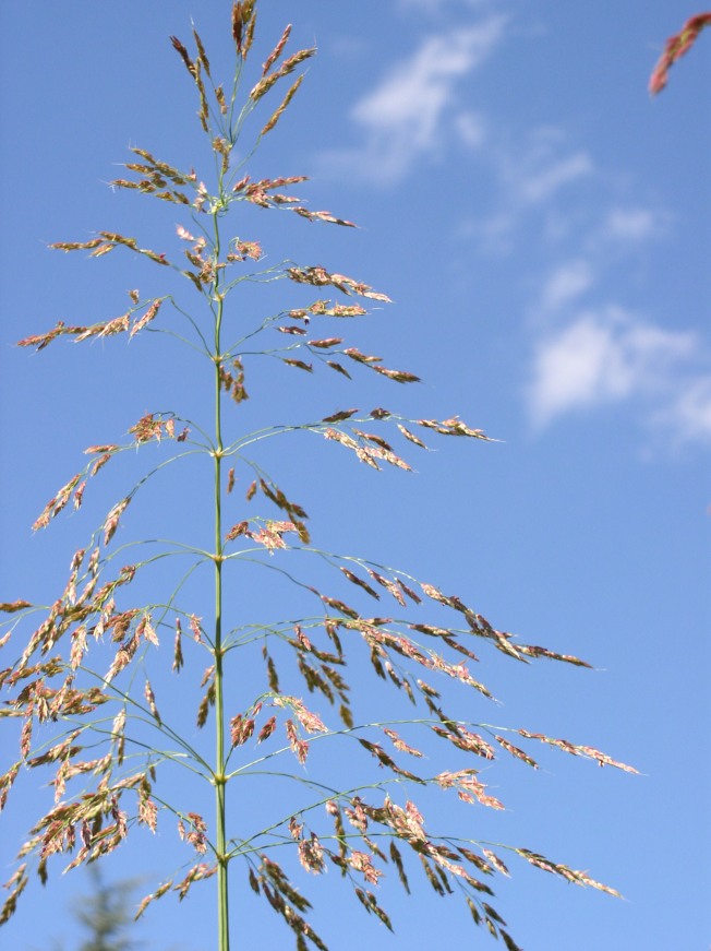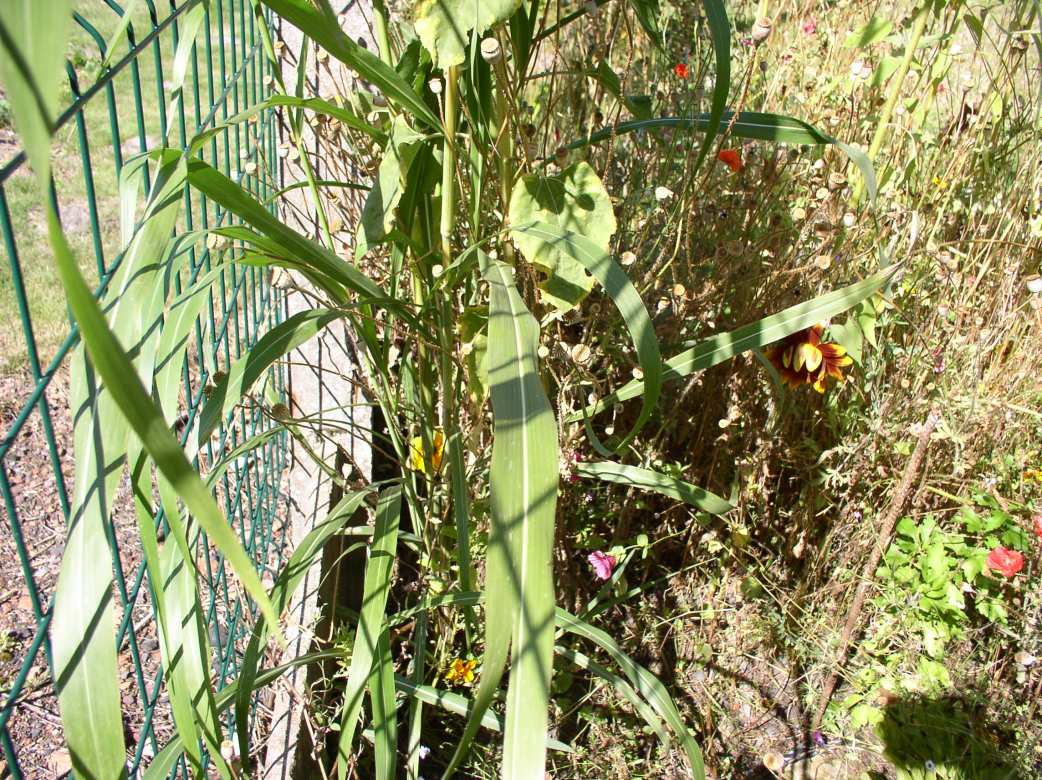 j'ai cette graminée que j'ai récupéré dans un jardin ou elle est venu pousser toute seule il y a deux printemps... pousse tardive en fin de printemps, atteint une hauteur de plus de deux métres (le haut du grillage est à deux métres sur la photo), trace avec des rhyzomes, mais sans faire des touffes très denses.