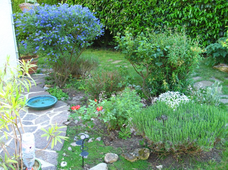 connaissez vous le nom de l'abuste a fleurs bleues sur la gauche ? puis je effectuer une taille severe ? merci d'avance