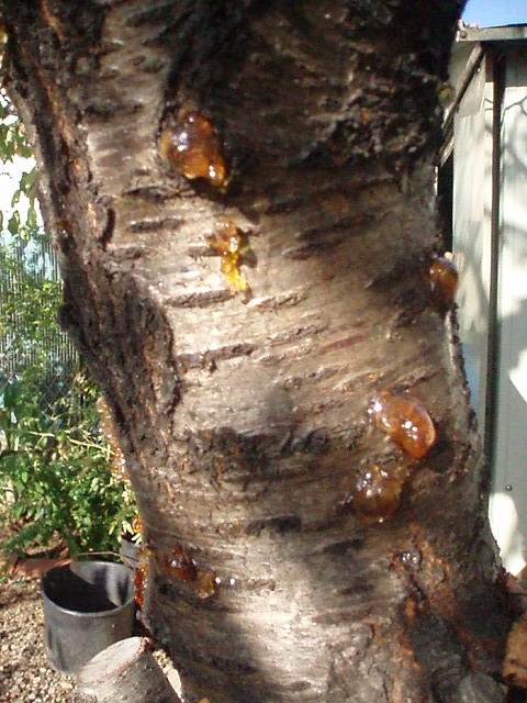 Gommose . (maladie fongique due aux plaies , de taille ou accidentelles .) On ne taille pas les arbres à noyaux ou alors le minimum si on est obligé .