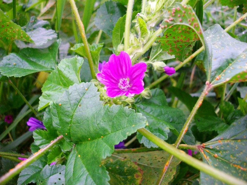 Sinon, il y a cette drôle de feuille, je ne sais pas ce que c'est: Il y a aussi cette fleur avec des feuilles malades: Est-ce que ça pourrait être un géranium ?