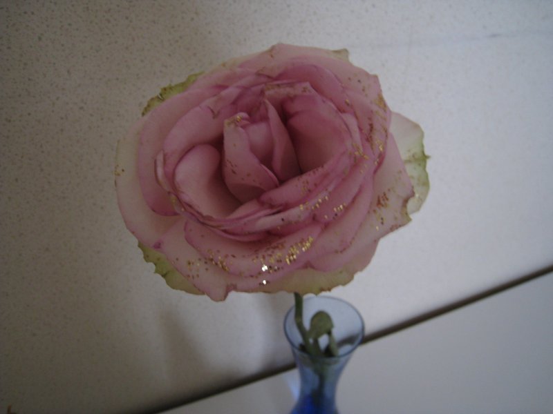 Voici la photo aujourd'hui (presque 3 semaines plus tard) : Qui peut m'expliquer pourquoi cette rose ne fane pas ? Elle semble pétrifiée, alors qu'il lui reste 2 cm d'eau dans le vase et qu'elle a perdu toutes ses feuilles.