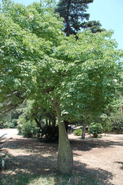De loin le tronc a une forme enflée et est courvert d'épines très acérées (voir photo