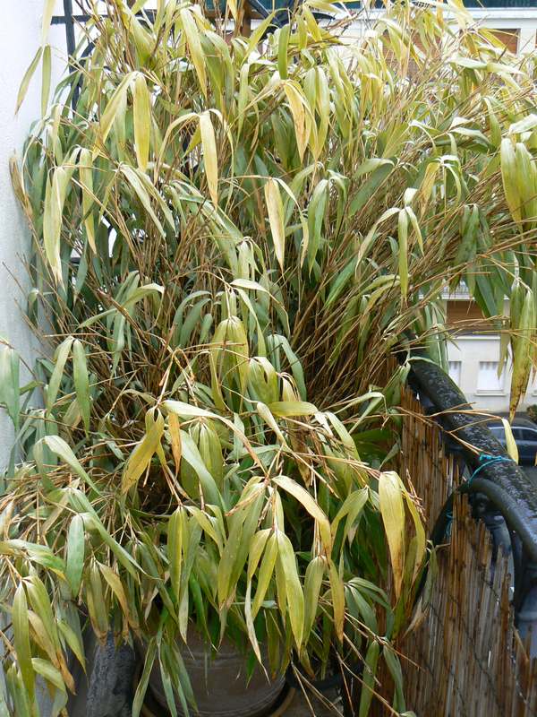 a priori, ce bambou est rustique donc je pencherais plus pour un manque de place, de nourriture puisque tu dis quel cela fait 6 ans qu il est sur ton balcon