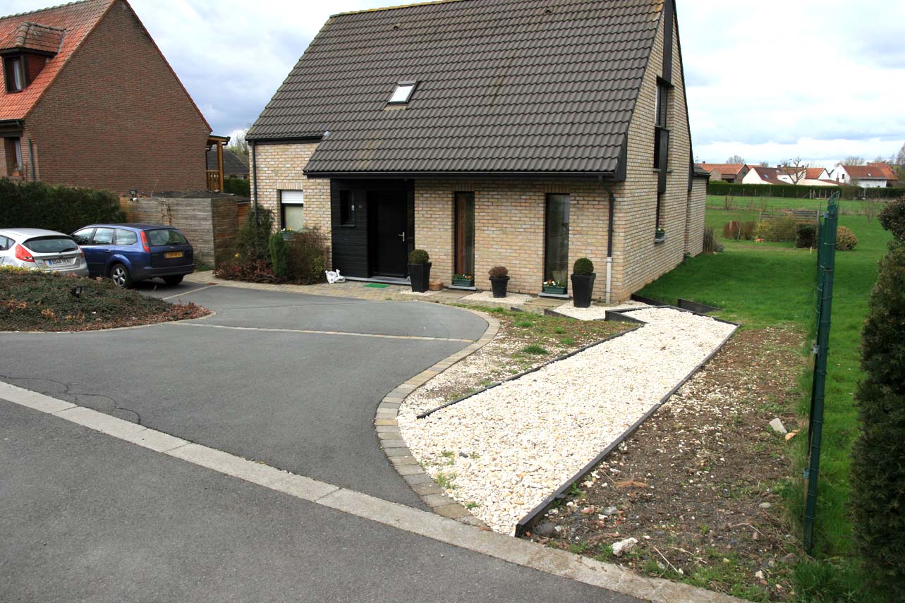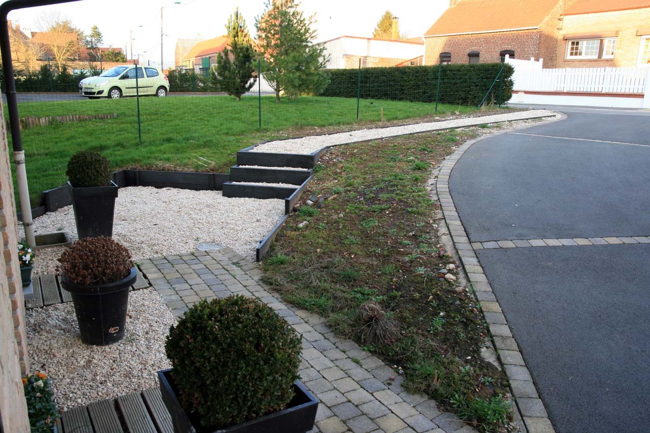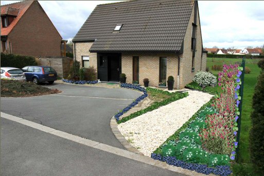 Attention, comme la maison est en contrebas de la route, je ne souhaite d'éléments trop haut car sinon ça va boucher la vue (fenêtres).
