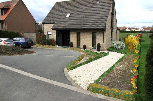 Inutile de dire que je veux un truc super, puisque c'est sur l'entrée...Attention, comme la maison est en contrebas de la route, je ne souhaite d'éléments trop haut car sinon ça va boucher la vue (fenêtres).