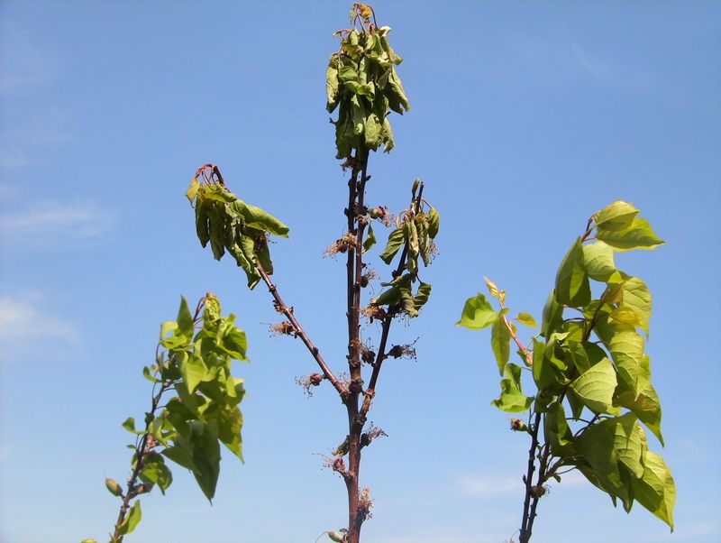 je viens d'observer pour la 1ère fois, sur mes abricotiers et pécher certaines branches qui en bout sont complètements fanés alors qu'en début de branche y'a des bourgeons superbes...