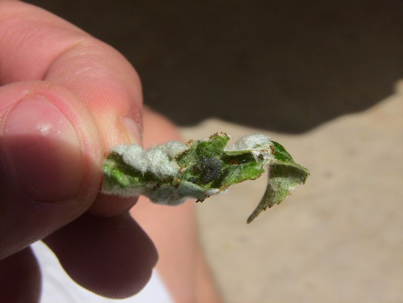 Dans mes poiriers et pommiers, j'ai ces petites bestioles qui y on élus domicile, les feuilles se rétractent et elles se cachent dedans comme dans un cocon....