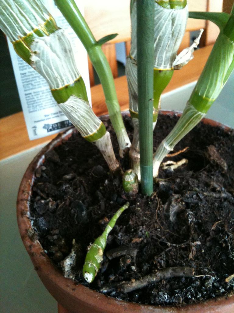 il est normal que les vieilles cannes se défolient et se rabougrissent à mesure que les nouvelles se développent. il ne faut pas les couper (sauf en cas de problème comme pourrissement) car elles servent de réserves nutritives aux jeunes cannes.