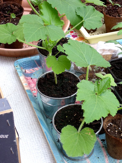 Les plants de courgettes, qui commencent à être à l'étroit !