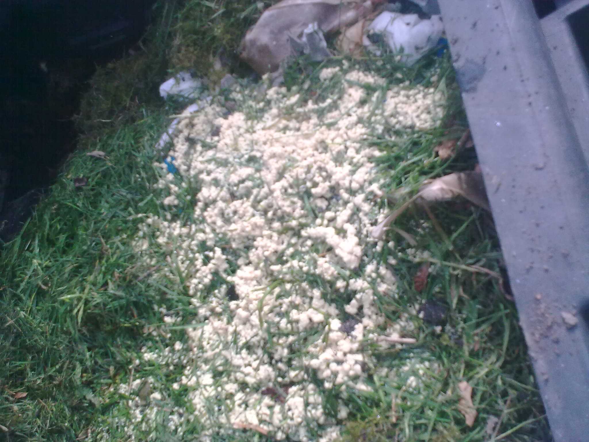 J'ai remarqué une chose bizarre qui se développe à la surface de mon tas de compost, et qui évolue TRÈS rapidement, hier j'ai recouvert de gazon coupé et ce matin la chose s'était développée par dessus, j'ai arrosé et une heure après il y avait un gros changement.