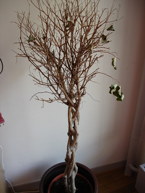 nous n'avons pas osé le rempoter, et j'aimerai vraiment qu'il vive...je lui ai acheté de l'engrais bio que je dilue dans de l'eau, on lui a coupé les bouts des branches sèches, je ne l'arrose qu'une fois par semaine, bref, je ni comprends rien, au secours et merci