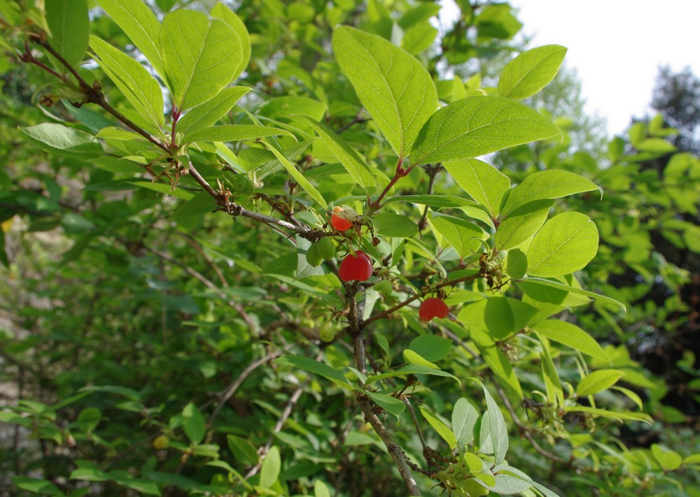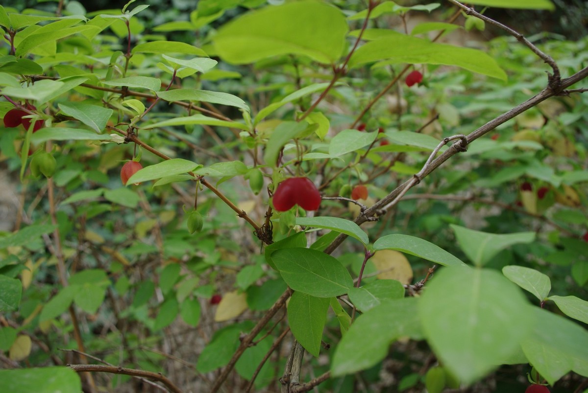 Les fruits semblent fusionner peu à peu en grossissant pour prendre cette forme de cœur. Ils sont d’abord verts (photo ci-dessous) avant de tourner au rouge vif.