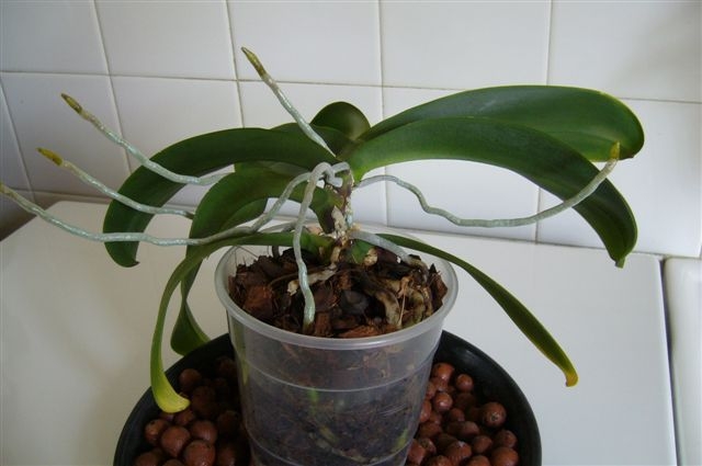 il est grand temps de rempoter, tous les 2/3ans pour les phals. au-dela de ça, l'écorce se dégrade en changeant l'acidité du substrat (pas apprécié du tout des phals) et devient de plus en plus "éponge" (se gorge plus facilement d'eau et sèche moins vite)