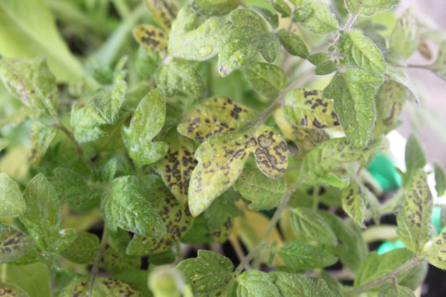 Les plans de tomates sont tous malades. Les feuilles ont des tache brunes marrons surtout les pointes et quelques trous.