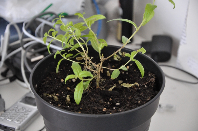 C'est une plante qui demande d'avoir un terreau quasiement toujours humide. En ce moment nous avons beaucoup de soleil et nous l'arrosons tous les soirs. Elle est orientée à l'ouest et se porte plutôt bien malgré la coupe auquelle elle a eu droit (les tisanes réalisées avec ses feuilles et branches sont terriblement bonnes)...