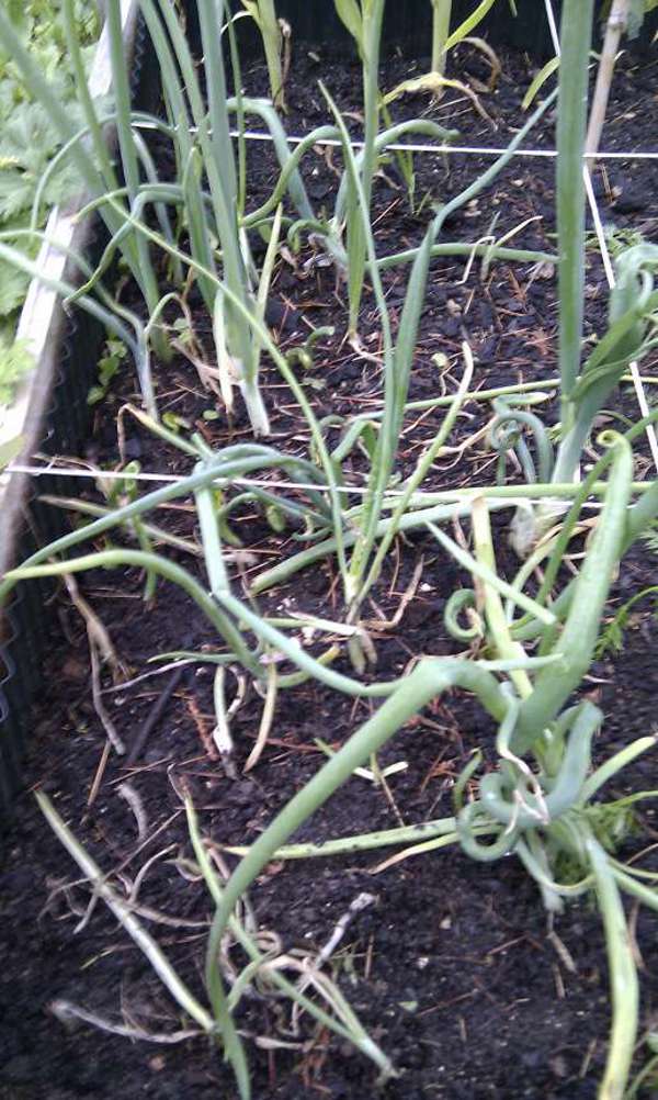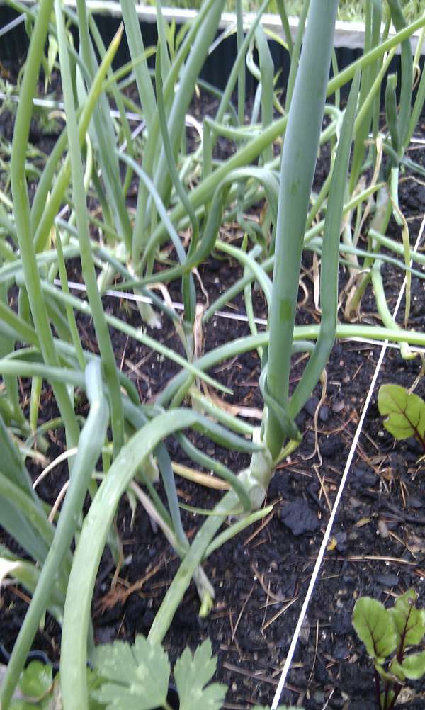 J'ai mis en terre des bulbilles d'oignons le 2 mars et je ne comprends pas ce qui se passe. Les feuilles sont toutes alambiquées et ils ne semblent pas se développer comme il faudrait.