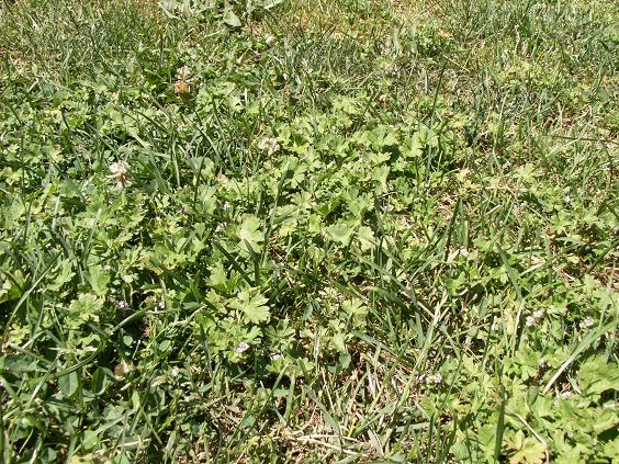 Si c'est pas du Geranium rotundifolium, c'est bien imité. Une fois tondu, c'est vert, ça vaut bien les graminées.
