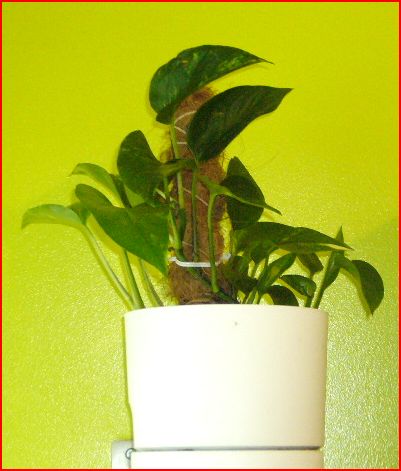Pour faire grimper les philodendrons et pothos, il te faut des tuteurs en mousse. Tu les guides dessus avec des attaches qui permettent aux nœuds (là où se situent les racines aériennes) d'être en contact avec le tuteur que tu détremperas lors de l'installation et vaporisera régulièrement avec de l'eau tiède. Les racines aériennes pénètreront le tuteur à la recherche d'humidité.
