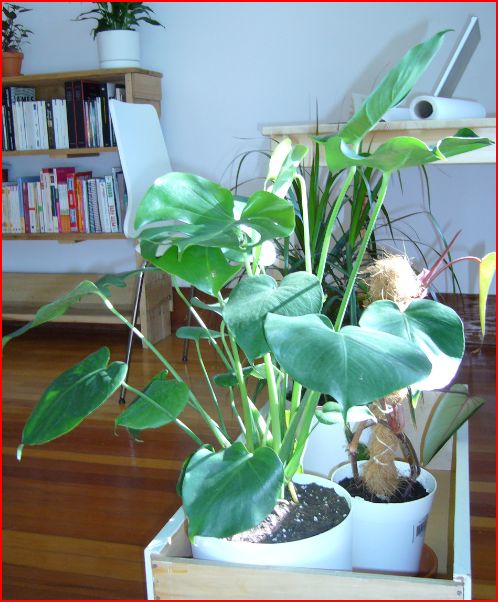 Sinon, si tu as une assez bonne luminosité (pas de lumière directe par contre, surtout l'été), beaucoup de philodendrons sont grimpants (scandens, burgundy, red emerald). Le monstera deliciosa grimpe aussi mais atteint très vite des proportions gigantesques. Il y a aussi les pothos, vigoureux et grimpants. Je te mets ici quelques photos des miens (certains sont plutôt tombants, mais ils peuvent grimper).