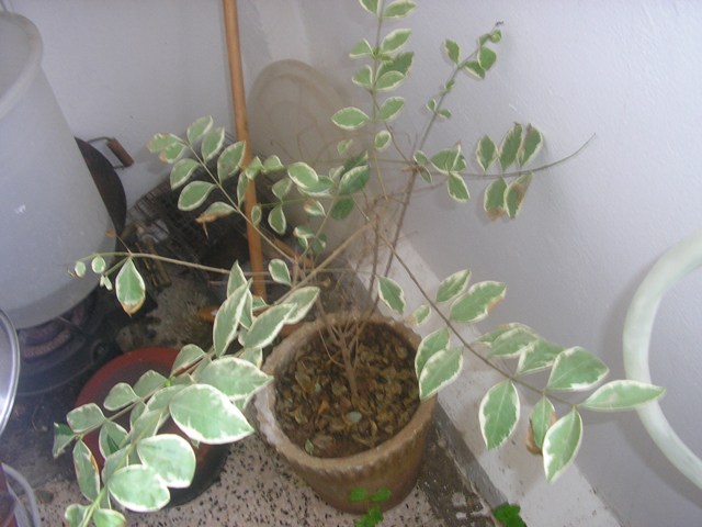à mon avis vu l'aspect général cette plante manque de soleil. Moi je la taillerai assez court en laissant quelques feuilles pour bien repartir. Et la mettrai au soleil.