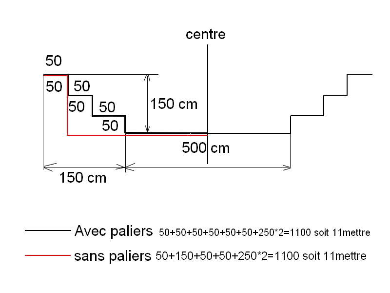 exemple en image pour un bassin avec plusieurs paliers dans le sens de la longueur
