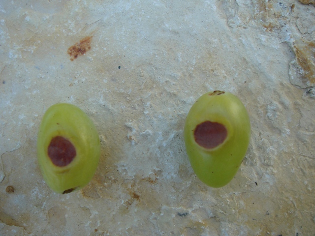 je remarque que certains grains présentent une tache brune, ronde et dure.