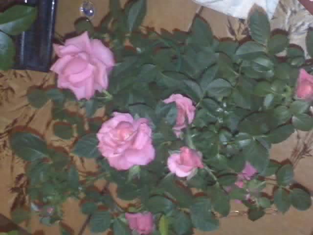 Voila je me suis acheté un rosier rose ( qui donne parme sur la photo ), il fait entre 20 et 25 centimètres de hauteur et de couleur rose. Mais le nom de la varièté n'était pas présente. J'espère que quelqu'un saura me donner un nom. Et deuxième chose, le pot fait environ 10 centimètres de diamètre et 10 de profondeur et le pot est constitué de 4 pieds de roses, donc je pense qu'il faut mettre chaque pieds dans un pot individuelle ? Merci d'avance. Voila une petite photo