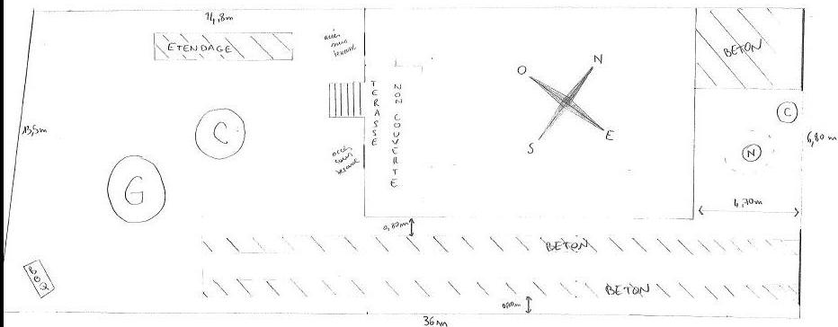 Comme le dit le titre de mon post, je cherche des conseils et des idées pour aménager mon jardin. Actuellement, aucun aménagement n'a été fait et il y a de l'herbe un peu partout. Je poste également un plan actuel de mon terrain pour que vous me fassiez part de vos suggestions...