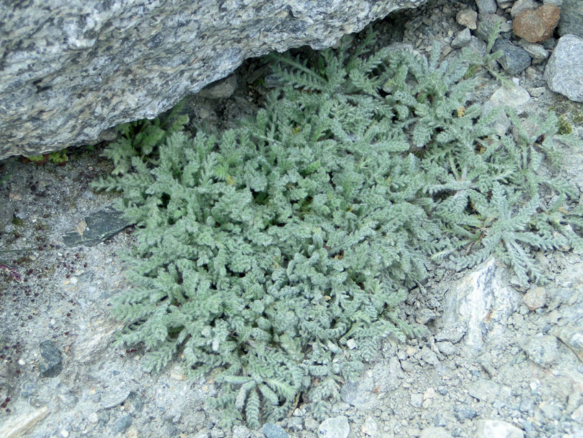 J'ai encore besoin de vos lumières pour m'identifier cette plante blottie au creux des rochers, à 3 400 m d'altitude, sous les glaciers dans le massif du Mont-Rose (Italie). Merci d'avance.