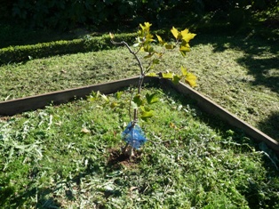 Une demi-souche portait un rejet. Nettoyée, je l'ai mise en terre. Et si ça prend, ça me fera un platane sauvé!