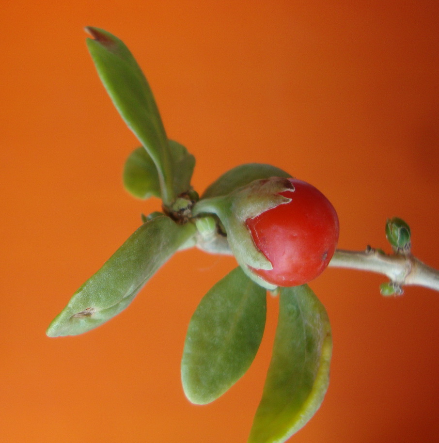 Comme Pascal, je dirais Lycium, pour la plante à fleurs solitaire blanche et violette et fruit rouge, mais plutot Lycium ferocissimum que Lycium intricatum .