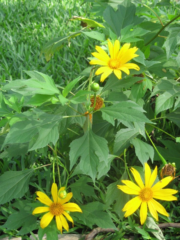 Merci à tous les deux. Concernant Tithonia diversifolia, je l'ai photographiée dans une plantation de bananes où elle est utilisée dans les terrains laissés au repos. Ceci confirme son emploi pour enrichir les sols.