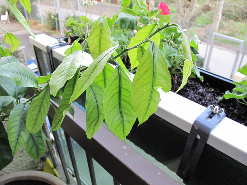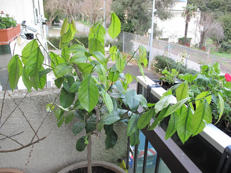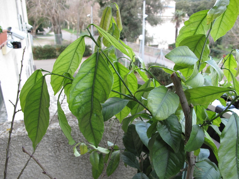 Il s'agit de feuilles qui ont poussé en 2010, assez tard car j'avais du procéder à une taille sévère. L'eau avec laquelle j'arrose n'est pas calcaire et j'arrose tous mes agrumes avec la même eau. Il est même parfois arrosé directement à l'eau de pluie, surtout en ce moment.