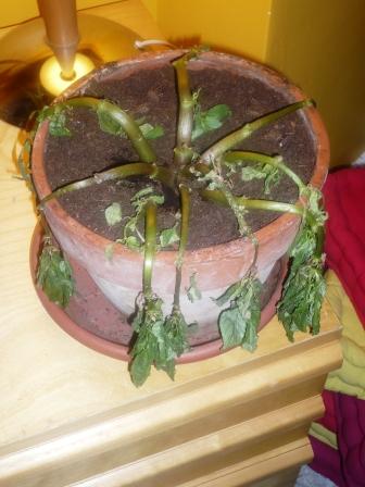 J'ai un problème avec mon impatience. Quand je suis rentrée de vacances elle avait les feuilles un peu tombantes, j'ai cru à un coup de chaud et je l'ai mise dehors 2 jours. Puis je l'ai rentrée et elle a commencé à ne plus être très en forme, je l'ai rempotée car je me suis apperçue que la terre n'écoulait plus d'eau.