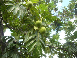 C'est le fruit de l'"arbre à pain", Artocarpus altilis.
