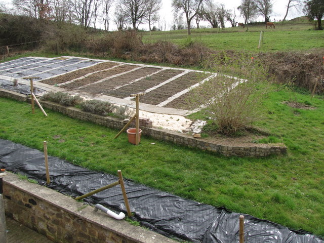 Pour la plus grande partie de mon potager, je pars d'une pelouse qu'on a bâché en octobre de l'année passée, et maintenant quand on débâche, il nous reste essentiellement de la mousse. Mon mari se charge d'aérer la terre avec la griffe de jardin, parce que je n'ai pas la force d'utiliser les outils avec de longs manches. Il n'a pas encore eu l'occasion de tout faire, mais je le poursuis pour que ça avance