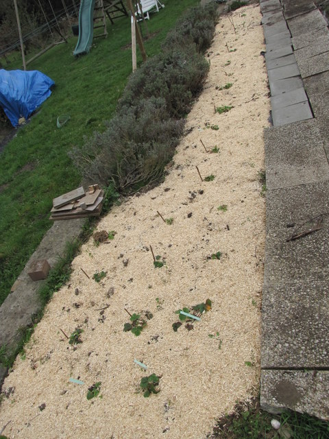 En plus du potager, j'ai fait une fraiserai dans laquelle je n'ai mis que des anciennes variétés de fraisiers, je suis curieuse de voir ce que ça va donner, il parait qu'elles ont plus de goût mais sont moins productives. Et je les ai associées avec de l'ail.