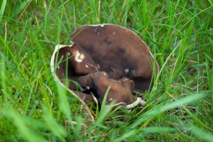 J'ai des champignons dans la pelouse le long d'un mur de mon jardin.