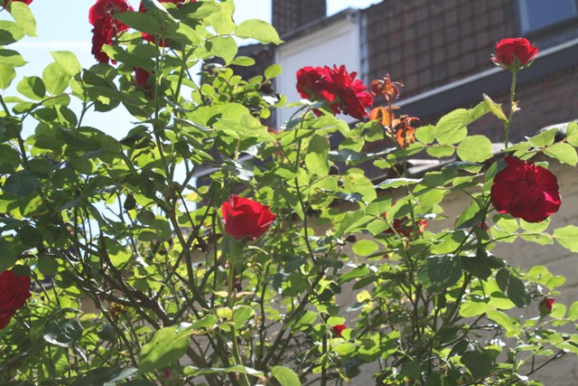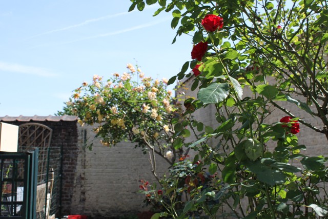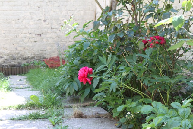 et aussi mes rosiers en fleur et ma pivoine surprise qui a fleurit